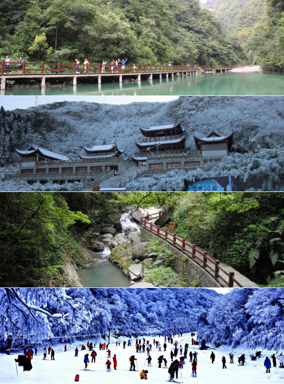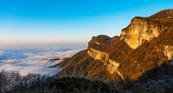 金佛山自然景观主要有悬崖绝壁、峡谷、奇峰、溶洞、生态石林、泉瀑以及气象景观